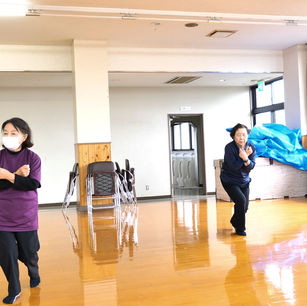 講師の指導のもと、音楽を聞きながらストレッチ体操や
